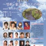2022年9月14日 / 最終更新日時 : 2022年9月14日 日本唱歌童謡教育学会 お知らせ 10/9 水芭蕉コンサート in 愛知「~唱歌・童謡・子どもの歌~」 名古屋公演 2022年10月9 日(日)に中電ホールにて、当学会後援の 「水芭蕉コンサート in 愛知「~唱歌・童謡・子どもの歌~」名古屋公演」を開催します。 野口雨情の孫・野口不二子さん、加藤省吾の次女・加藤三智さん、かなりやとう […]