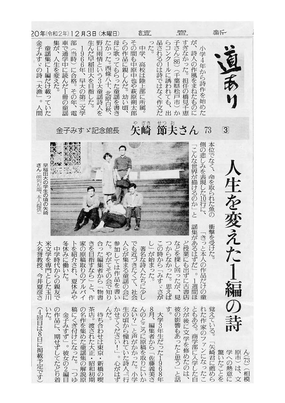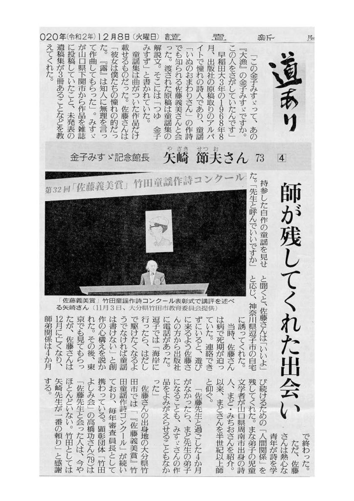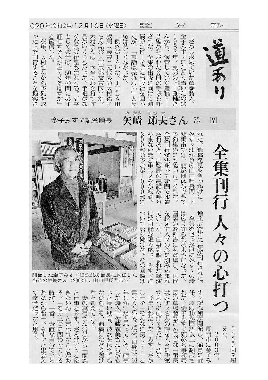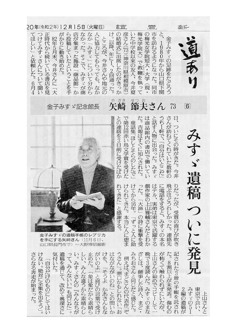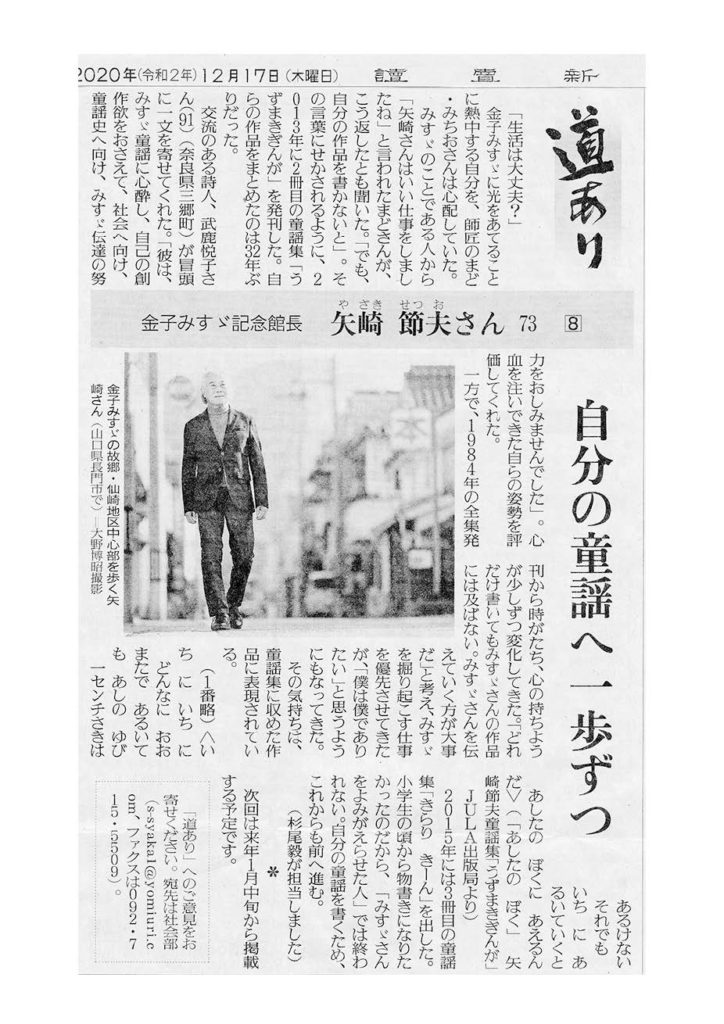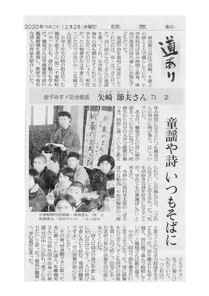 金子みすゞ記念館の矢崎館長の読売新聞掲載記事をご紹介!