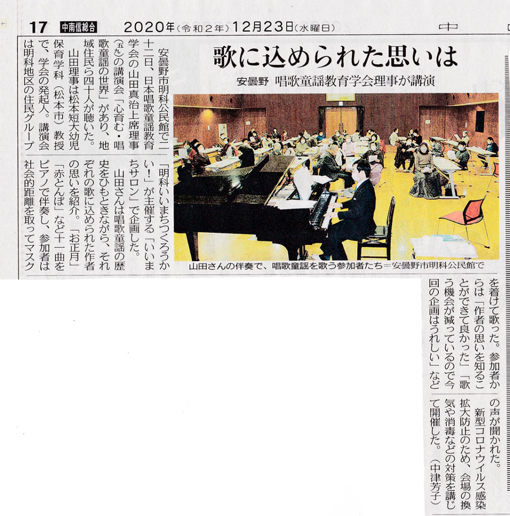 演題は「心育む・唱歌童謡の世界」。12月23日の中日新聞の記事を紹介します。