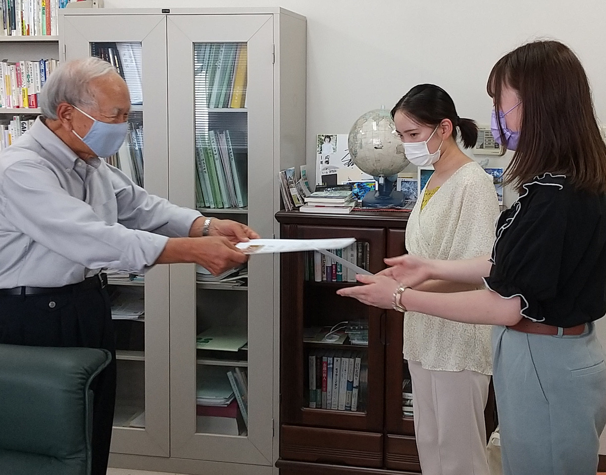 日本歌唱指導者資格検定の認定証授与が、松本短期大学学長室で行われました。