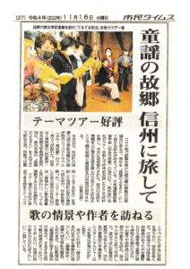 名古屋発着2泊3日の信州「唱歌・童謡」ツアーを企画!