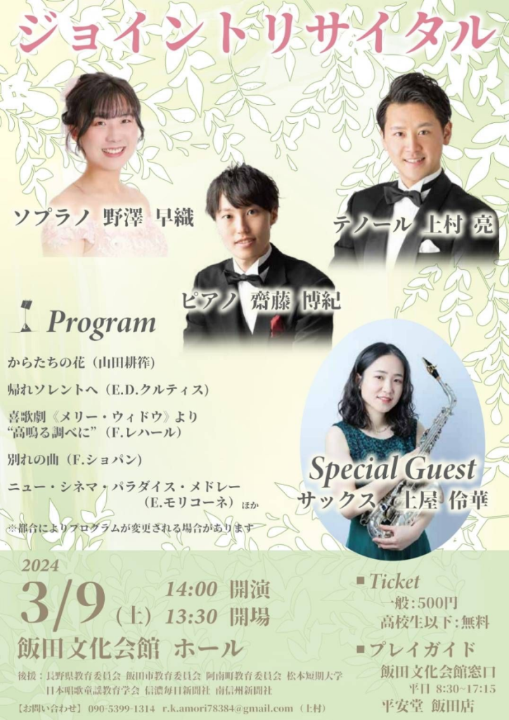 3/9 ジョイントリサイタル開催 (長野県飯田市)