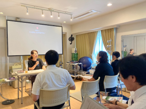 排日運動・関東大震災・日米友情人形を映像とトークで説明し、